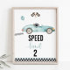 Blue Race Car Speed Limit 2 Birthday Sign