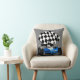Blue Race Car with Checkered Flag Throw Pillow