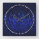 Blue Racing Flames on Carbon Fiber Print Square Wall Clock