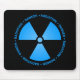 Danger - Radiation - blue lettering and radiation symbol with a black background.