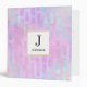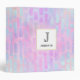 A binder with an abstract background pattern. Pink purple and blue watercolors make up this artistic design which features vertical rectangle shapes on a soft mottled background. A square layered over top with a faux gold foil border, your personalized text inside.