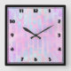 Blue Rectangle Shapes on Pink Background Square Wall Clock