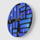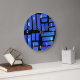 A geometric pattern with varying sizes of rectangle shaped tiles in pretty shades of blue and purple on a black background.
