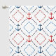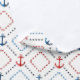 Blue, red anchors on a white background with decorative elements, colorful sea pattern for boys.