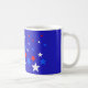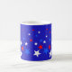 Five pointed star pattern in blue, red and white color on blue background. Abstract space design.