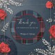 This wedding thank you sticker comes in different sizes, shapes and papers. It is customizable with your Intros, names and or monograms. It shows a harmonious blend of a navy blue red black scottish pattern and it has fitting light blue tones and white typography. The minimal round navy blue overlay with a burgundy border is for your customization. Hobinishop