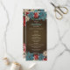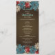 Abstract aqua blue, red and cream floral background. Wedding program template in grunge or retro style. Elegant pattern with floral illustration in vintage style. Size 4" x 9.25", one side version. Other color combinations and further customization available by request.