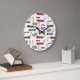 Blue & Red Fast Retro Vintage Racing Cars Large Clock