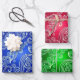 Blue Red & Green Celestial Swirls Pattern Wrapping Paper Sheets