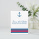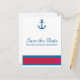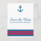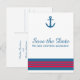 Elegant and classic Nautical Anchor Save the Date Postcard with a simple boat anchor and an array of stripes in dark navy blue and red. This nautical beach themed save the date can be easily customized with your wedding details. For more customization options, click on the Customize It button.