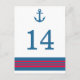 Blue Red Nautical Anchor Table Number Postcard