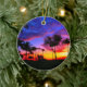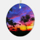 Blue Red Sunset Exotic Hawaiian Beach Palm Trees Ceramic Ornament