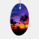 Blue Red Sunset Exotic Hawaiian Beach Palm Trees Ceramic Ornament