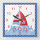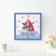 Personalize this big bold sailboat wall clock perfect for a child's room or vacation house with a monogram.. Just edit in the easy Zazzle text editor. Also available with red polka dots. Cute red white and blue sailboat on blue polka dot background created in part with graphics by Kristi W purchased at www.digiwebstudio.com.
