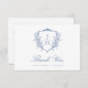Blue Regency Floral Crest Monogram Wedding Thank You Card
