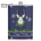 Toast to the season with this elegant Blue Reindeer Flask, featuring a graceful white reindeer framed by a festive Christmas wreath of holly berries and holiday garland. Delicate white snowflakes fall softly in the background, creating a timeless Christmas theme that radiates warmth and cheer. Finished with a “Happy Holidays” greeting in elegant script, this stylish accessory makes a perfect choice for holiday drinking gifts and festive celebrations.