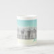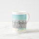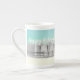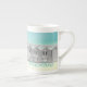 Personalized retirement cup with beach huts by the Cornish seaside.