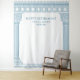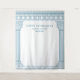Elegant Greek or Roman Toga party backdrop featuring minimalist temple pillars and Greek meander pattern in blue. Customizable product for a memorable celebration. Perfect for your Ancient Greece or Ancient Rome-themed party.