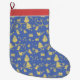 Blue Retro Christmas Pattern Large Christmas Stocking