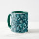Blue, aqua and teal squares decorate this retro style coffee mug. The design is from original art.