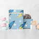 Blue Retro Rocket Ship Outer Space Birthday Boy Wrapping Paper