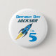 Blue Retro Rocket Ship Personalized Birthday Boy Button