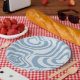Blue Retro Swirl Groovy Y2K Pattern Paper Plates