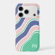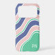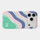 Blue Retro Wavy Stripes Custom Initial Monogram iPhone Case