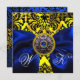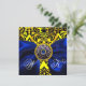 BLUE RIBBON GOLD YELLOW BLACK DAMASK MONOGRAM INVITATION