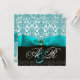 BLUE RIBBON TURQUASE WHITE BLACK DAMASK MONOGRAM INVITATION