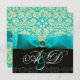 BLUE RIBBON TURQUOISE WHITE BLACK DAMASK MONOGRAM INVITATION