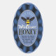 Elegant blue ribbon border with a bumble bee graphic at the center to give a premium appearance to honey products for sale at the farm market, or gifts to your friends. Use these honey jar stickers upright (vertical) for large, oval and queenline containers, upside down squeeze bottles and quart (3 lbs.) mason jars. Customize the text with the brand name of your beekeeping business, contact information, type of honey, weight, and date. ©dotpattern