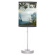 I have purchased other similar lamps. I use them as extra light for guest's. They are inexpensive, easy to assemble and good height for reading. I like that there are many pre-made shades to choose from and that, like this one, you can use your own art.
