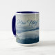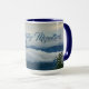 With a Mountain peak amid the clouds in beautiful shades of blue and customizable text, this mug features a view of The Blue Ridge Mountains shroud in clouds. Personalize with Initials.