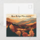 Celebrate the serenity of the outdoors with this fully customizable Blue Ridge Mountains postcard. The front features a modern, flat graphic illustration of layered mountain ridges in earthy tones of sienna, orange, and deep green. A large, soft sun sits behind the peaks, creating a calm and minimalist aesthetic. The "Blue Ridge Mountains" text is fully editable, allowing you to personalize the location or add a custom name for a unique travel memento or seasonal greeting.