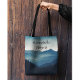 the Blue Ridge Mountains, Montebello. Customizable tote depicting the Blue Ridge Mountains and pine trees