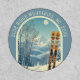 Patch from a wonderful skiing holiday in the beautiful Blue Ridge Mountains North Carolina usa! This button features an arch with a stunning blue-grey mountain landscape and retro ski boards in an orange tribal pattern in the foreground.
