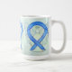 The guardian angel mug features the painting of a blue river awareness ribbon angel. Blue river awareness angel ribbon art cups or mugs can be customized with personalized messages to make great cause mugs for fundraisers, awareness cup gifts, or other special events or occasions.