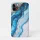 Waves of vibrant blue and aqua flow across the image, interspersed with shimmering gold accents. The colors swirl and blend, giving a sense of movement and elegance.