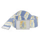 A fun belt for dads with a blue robot sweeping the floor for papers from a manual instructions on how to build .....robots ;)