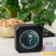 A really cool science fiction bluetooth speaker featuring a chilling blue robot mask with metallic effect. The text reads "Rise of the AI dominioN" but you can change it if you like. It's a nod in the direction of how artificial intelligence could lead to a dreadful future where machines have dominance over humans.