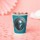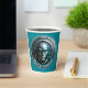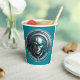 A great science fiction paper cup design featuring a chilling blue robot mask with metallic effect. The text reads "Rise of the AI dominioN" but you can change it if you like. It's a nod in the direction of how artificial intelligence could lead to a dreadful future where machines have dominance over humans.