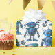 Blue robot pattern wrapping paper.