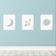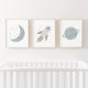 Add a finishing touch to your little one's space with this watercolor rocket, moon and planet set of prints.