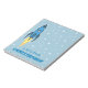 Kids Personalized Notepad - Blue retro rocket ship blasting off into outer space. Personalize it with a name or other customized text. Cartoon vintage rocketship design is perfect for a boy who likes writing or needs a unique notepad for back to school supplies. Great for kids interested in outer space, rockets, space ships, exploration, aerospace science, aeronautical engineering, NASA, scifi, astronauts, or things found in the cosmos, such as planets, stars, galaxies, the moon etc. Shoot for the stars. I love you to the moon and back.