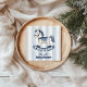 A sweet watercolor rocking horse takes center stage in this charming baby shower design. Set against a softly striped blue background, this illustration evokes a classic nursery vibe with a festive winter twist, perfect for celebrating a little one's arrival.