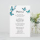 Blue romantic exotic beautiful butterflies. Elegant modern wedding menu.
