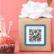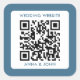 dusty light blue modern minimalist wedding qr code stickers with you wedding website qr code and your bride and groom name. Easy to use on any window, car or on your party bags as labels to say thank you to your wedding guests. The perfect promotional sticker for any wedding or birthday party and to let your guests know where you have your wedding information. It is a scannable sticker that can be used as a envelope seal for your wedding invitations.