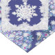 Snowflake with my drawing of a stained glass window from an old European church: a rose window, with touches of a wide variety of colors, including shades of blue, on a navy blue background. Inlay of light blue rhinestones (drawn). For an old times winter pattern. This motif is also available in cardinal red in my “cardinal red rosace” collections.