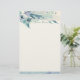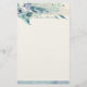 This lovely page is headed with a swash of a blue watercolor rose mixed with light violet foliage, teal and mint leaves. The bottom is finished with a blended color wash border. All printed over a cream paper image which is blank on the back.